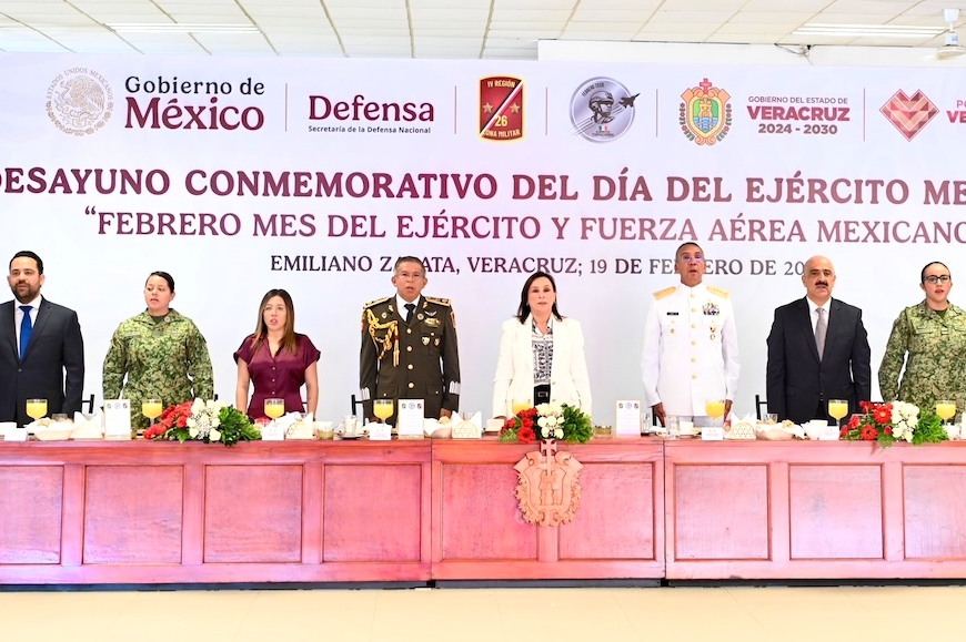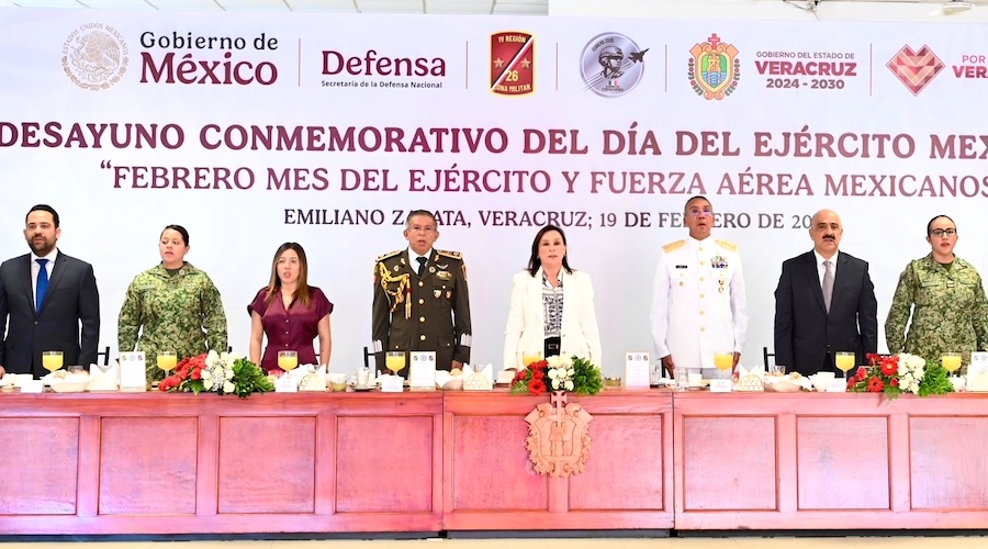 En la 26a. Zona Militar de El Lencero Xalapa, Ver., 19 Febrero 2026.- La gobernadora Rocío Nahle García y el general de Brigada DEM, Miguel Ángel Rodríguez Gutiérrez, presidieron el 113 aniversario de la creación del Ejército Mexicano, en ceremonia que tuvo lugar en las instalaciones de l 26a. Zona Militar de El Lencero, en el municipio de Emiliano Zapata. Al acto acudió la presidenta … Continúa leyendo Conmemoran 113 aniversario del Día del Ejército Mexicano