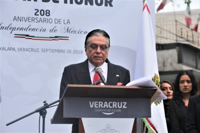 Xalapa, Ver., 28 de septiembre de 2018.- En el marco del 208 Aniversario de la Independencia de México, el Magistrado Presidente del Tribunal Superior de Justicia, Edel Humberto Álvarez Peña, acompañado de Magistradas, Magistrados, Jueces y servidores públicos de los órganos jurisdiccionales y administrativos del Poder Judicial del Estado encabezó la Guardia de Honor y depositó una ofrenda floral ante el monumento erigido en memoria del Padre de la Patria, Don Miguel Hidalgo y Costilla.