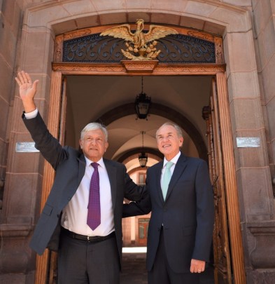 San Luis Potosí, S.L.P., 05 de octubre de 2018.- Tras la reunión que sostuvo con el gobernador de San Luis Potosí, Juan Manuel Carrera López, el presidente electo de México, Andrés Manuel López Obrador, afirmó que durante su gobierno no se implementará el “fracking” como método de extracción de petróleo y gas.