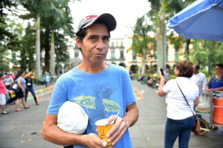 Xalapa, Ver., 14 de octubre de 2018.- Eventos como La Hora del Café nos ayudan a distraernos y olvidar por un momento las preocupaciones, dice Santana Montero Montiel, quien desde Cárdenas, Tabasco, acompaña a su esposa a un tratamiento médico: “Nos quedamos en un albergue, ahorita salimos a dar una vuelta y encontrarnos con esto es maravilloso; por un ratito nos olvidamos de las penas, disfrutamos de la ciudad y de un buen café”.