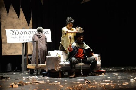 Por otro lado, el grupo Iskay Teatro, conformado por estudiantes de la Facultad de Teatro, presentaron la obra cómica Érase una vez un rey, que narra la vida de tres pepenadores –Watusi, Ñafle y Sonajera–, quienes pasan el tiempo con un juego de roles de poder, desde ser rey hasta dictador, pasando por el presidencialismo y la democracia.