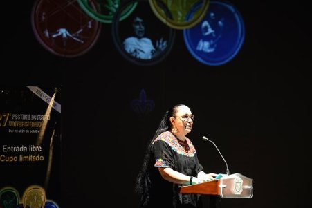 Sara Ladrón de Guevara dijo que el Festival de Teatro Universitario es una de las tradiciones relevantes de esta casa de estudios, por ello los alumnos y comunidad universitaria deben hacerlo suyo, ya sea participando en alguna obra y/o asistiendo a disfrutar alguno de los montajes.