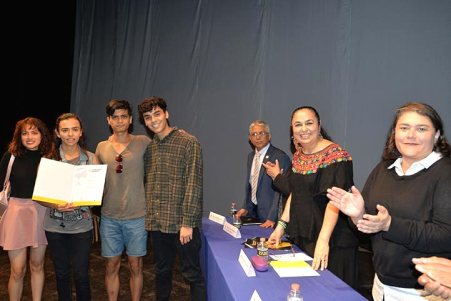 Y se entregó una mención especial a Ana Karen Huerta Cortés por la dramaturgia y dirección de Vindicta.