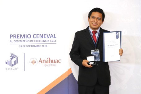 Coatzacoalcos, Ver., 21 de octubre de 2018.- Jorge Alfredo Palestino Jiménez, egresado de la Facultad de Ciencias Químicas (FCQ) de la región Coatzacoalcos-Minatitlán de la Universidad Veracruzana (UV), recibió el Premio Ceneval al Desempeño de Excelencia del Examen General de Egreso de la Licenciatura (EGEL), por haber obtenido un desempeño sobresaliente en las cuatro áreas de la evaluación: Análisis elemental de procesos, análisis fenomenológico de procesos, análisis y diseño de procesos básicos y análisis, diseño y control de sistemas de procesos.