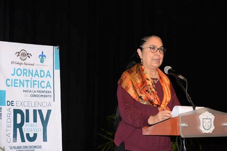“La Cátedra Ruy Pérez Tamayo es el resultado de un convenio de nuestra institución y El Colegio Nacional, y a través de la misma se busca reconocer la trayectoria y el legado de este destacado médico, patólogo e inmunólogo, académico y extraordinario divulgador de la ciencia”, precisó la rectora de la UV, Sara Ladrón de Guevara, al presidir la ceremonia de clausura realizada en el auditorio de la Facultad de Arquitectura.