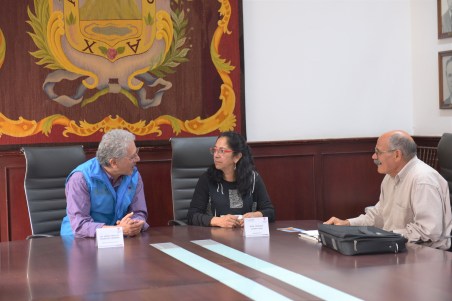 Xalapa, Ver., 01 de noviembre de 2018.- El presidente municipal Hipólito Rodríguez Herrero recibió en la sala ex Presidentes al artista plástico Rafael Villar, creador de la escultura Cinco Cerros, ubicada en el cruce del Circuito Presidentes y la carretera nueva a Coatepec, quien solicitó el apoyo del Gobierno Municipal para dar mantenimiento a esta obra.