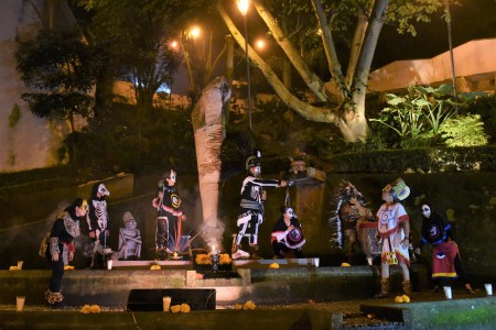 En el marco de la celebración del Día de Muertos y teniendo como escenario el puente Xallitic, los artistas compartieron con los asistentes la cosmogonía de los antepasados prehispánicos.