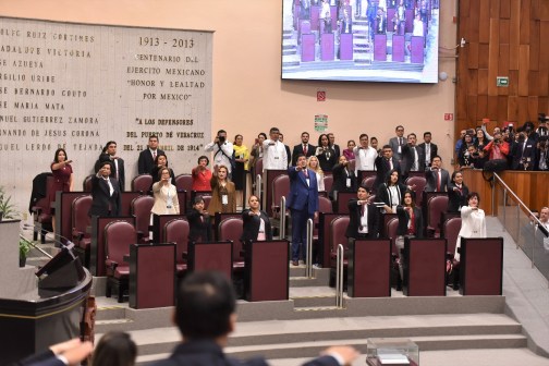 Xalapa, Ver., 05 de noviembre de 2018.- Este lunes, a las 12:21 horas, quedó legalmente constituida la Sexagésima Quinta (LXV) Legislatura del Estado de Veracruz de Ignacio de la Llave, en la que sus 50 integrantes, diputadas y diputados, rindieron protesta de ley para el periodo comprendido del 5 de noviembre de 2018 al 4 de noviembre de 2021.