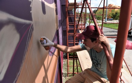 - El artista francés Nicolas Barrome avanza en la creación de un mural de 180 metros cuadrados