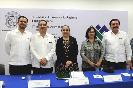 En el presídium de esta sesión del CUR estuvieron Magdalena Hernández Alarcón, secretaria Académica; Salvador Tapia Spinoso, secretario de Administración y Finanzas; Octavio Ochoa Contreras, secretario de Desarrollo Institucional; Aurora Galicia Badillo, secretaria Académica regional; Francisco Javier Velázquez Vallejo, alcalde de Poza Rica; Juan Antonio Aguilar Mancha, alcalde de Tuxpan, y Jorge Vera Hernández, presidente municipal de Álamo.