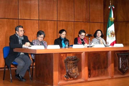 En el presídium también estuvieron presentes Bertha Alicia Ramírez Arce, secretaria Técnica de la cátedra, y Esther Hernández Palacios, coordinadora de la Unidad de Género de la UV e hija del homenajeado.