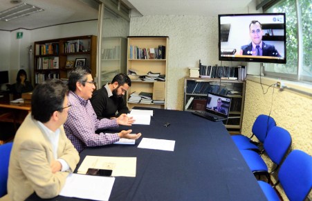 Ciudad de México, 17 de noviembre de 2018.- Por primera vez, un alumno de la UNAM realiza su examen profesional a distancia para obtener la licenciatura en Relaciones Internacionales, mediante el Sistema Universidad Abierta y Educación a Distancia (SUAyED). Se trata de Héctor Eduardo García Álvarez, egresado de la Facultad de Ciencias Políticas y Sociales (FCPyS). Cuando recibió el veredicto, el grito de goya retumbó hasta Bruselas, Bélgica.