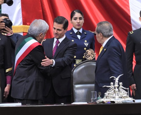“Diputadas y diputados, senadoras, senadores, autoridades locales y federales. Invitadas e invitados del extranjero. Licenciado Enrique Peña Nieto, le agradezco sus atenciones. Pero, sobre todo, le reconozco el hecho de no haber intervenido, como lo hicieron otros presidentes, en las pasadas elecciones presidenciales.