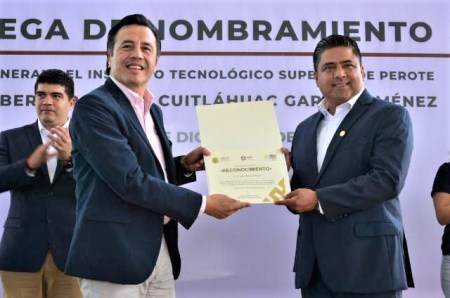 Finalmente, el Gobernador nombró a Antonio Janoary Alemán Chang como nuevo director del Instituto Superior Tecnológico de Perote; y entregó un reconocimiento al director saliente, Jesús Martínez Fentanes, por su profesionalismo y dedicación al frente de la institución.