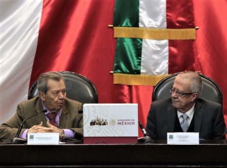 Carlos Urzúa Macías, secretario de Hacienda y Crédito Público, entregó este sábado el Paquete Económico 2019 a Porfirio Muñoz Ledo, presidente de la mesa directiva de la Cámara de Diputados, en un acto protocolario celebrado en el salón Legisladores de la República en el Palacio de San Lázaro, de la Ciudad de México.