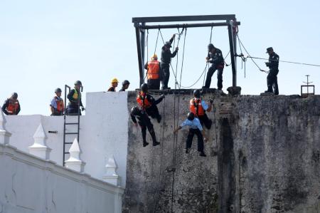 Como muestra de su preparación, lo elementos graduados realizaron una demostración de tácticas especializadas de rescate, simulando el desalojo de un edificio en llamadas, mediante técnicas avanzadas de rapel.