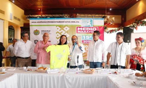 Veracruz, Ver., 03 de enero de 2019.- La Secretaría de Turismo y Cultura (SECTUR) presentó la camiseta conmemorativa y medalla de la edición 15.ª del Medio Maratón de Veracruz, que se celebrará el próximo 20 de enero en el bulevar Manuel Ávila Camacho.
