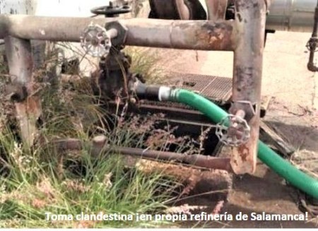Un diario local, El Sol de Salamanca, publicó imágenes de la toma clandestina y de la manguera para sustraer el combustible.