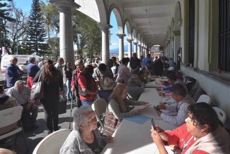 Xalapa, Ver., 11 de enero de 2019.- Cientos de personas, en su mayoría adultos mayores, siguen acudiendo al Palacio Municipal para pagar el Impuesto Predial y la Recolección de Residuos, aprovechando los descuentos que se mantendrán todo enero.