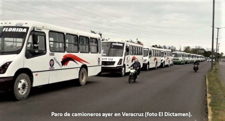 Ayer dijo que han buscado una mesa de diálogo con el actual gobierno pero no han tenido respuesta y por eso se fueron al paro en lugares como Orizaba, Coatzacoalcos, Minatitlán, Agua Dulce, Las Choapas, Veracruz y Boca del Río, entre otras. En la zona conurbada las actividades prácticamente se colapsaron. En el sur fueron más de 1,000 las unidades sin moverse.