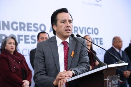 Xalapa, Ver., 25 de enero de 2019.- El gobernador Cuitláhuac García Jiménez reiteró que está metiendo orden en los procesos de asignación de plazas docentes y administrativas de la Secretaría de Educación de Veracruz (SEV), para acabar con los manejos oscuros y corruptos.