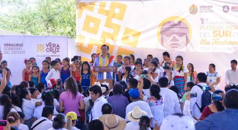 Ante representantes de las etnias nahua, mixe y zoque-popoluca, y habitantes de 14 municipios de la región, el Gobernador recibió el bastón de mando como líder de los pueblos originarios, y los invitó a estar presentes en la celebración de los 500 años de la fundación de la ciudad de Veracruz, el próximo 22 de abril, fecha en la que también estará presente el presidente de la República.