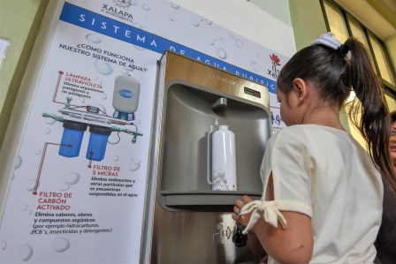 Xalapa, Ver., 26 de febrero de 2019.- Con los nuevos dispensadores de agua potable instalados en cada piso del Palacio Municipal, el Ayuntamiento de Xalapa se pone a la vanguardia ambiental, pues reducirá el consumo de garrafones en por lo menos la mitad y dejará de erogar hasta 20 mil pesos mensuales.