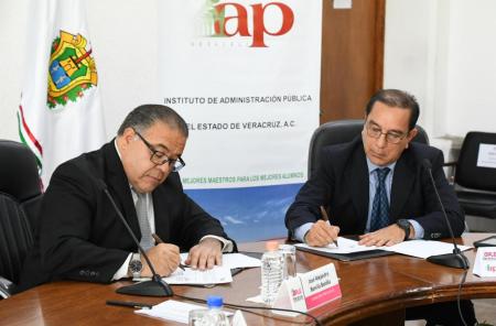 Xalapa, Ver., 01 de marzo de 2019.- Con la finalidad de brindar oportunidades académicas, el Organismo Público Local Electoral de Veracruz (OPLE) y el Instituto de Administración Pública del Estado de Veracruz A.C. (IAP), firmaron un convenio de colaboración a través del Consejero Presidente Alejandro Bonilla Bonilla y el Director General del Instituto Arturo Francisco Gutiérrez Góngora, que permite otorgar becas de especialización en la modalidad de maestrías, doctorados, así como de licenciaturas, diplomados, y cursos ejecutivos a los servidores públicos que laboran en este organismo.