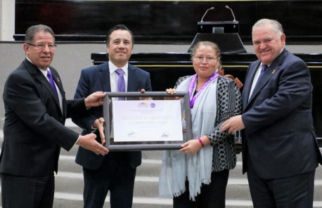 Lo anterior, al tiempo que entregó la Medalla “Premio Estatal a la Mujer 2019”, que el H. Congreso de Veracruz concedió a Norma Romero Vázquez, coordinadora de “Las Patronas”, quienes apoyan a los migrantes en su paso por Amatlán de los Reyes.