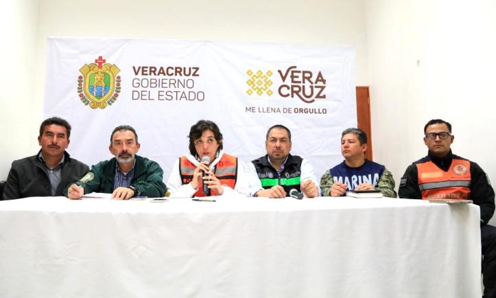 Estuvieron en la conferencia de prensa el director general de Protección Civil de la Coordinación Nacional de PC, Óscar Zepeda Ramos; el suplente legal de la CONAFOR en Veracruz, Héctor Mota Velazco; y el alcalde de Las Vigas, Alejandro Lino Cruz Romero.