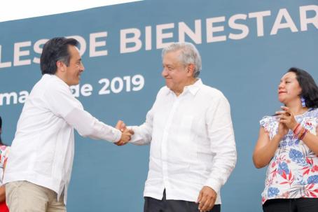 Poza Rica, Ver. 29 de marzo de 2019.- Durante la visita del presidente Andrés Manuel López Obrador, el gobernador Cuitláhuac García Jiménez anunció una inversión por más de 100 millones de pesos en obra pública y rehabilitación de carreteras de Coatzintla, Tihuatlán, Cazones y Poza Rica.
