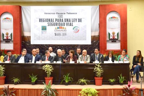 Xalapa, Ver., 01 de abril de 2019.- El diputado José Manuel Pozos, presidente del Congreso del Estado, señaló, al dirigirse a los organizadores y participantes del foro regional, Ley General de Seguridad Vial, que con este evento se abonan experiencias, esfuerzos intelectuales, a una iniciativa legislativa federal, que ha sido trabajada por muchos años, por la sociedad civil y por especialistas en la materia.
