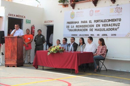 Como muestra de ello, se inauguró una maquiladora textil en el Centro Penitenciario de Jalacingo; con lo que el Gobierno de Veracruz ratifica su compromiso para una verdadera readaptación social, pues se acordó continuar con las gestiones para llevar talleres a los 17 centros de reclusión en la entidad.