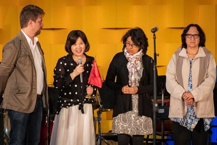 Edgar García, Zhang Xiaoling, Alba Bellido, su intérprete, y Magdalena Hernández