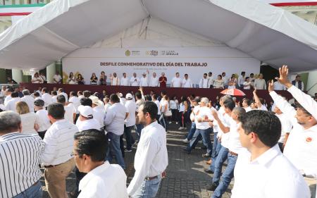 Xalapa, Ver., 01 de mayo de 2019.- En el marco del Día Internacional del Trabajo, el gobernador Cuitláhuac García Jiménez presidió el desfile conmemorativo en el que participaron más de 62 mil 400 trabajadores, agrupados en diferentes sindicatos, federaciones y centrales obreras.