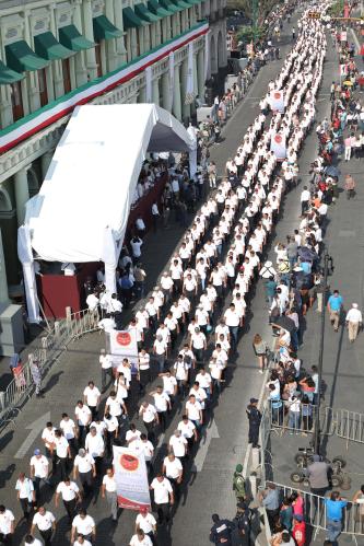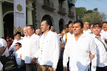 Este miércoles, desfilaron frente a Palacio de Gobierno trabajadores agrupados en las Confederaciones de Trabajadores de México (CTM), y Revolucionaria de Obreros y Campesinos (CROC), así como en las Federaciones Autónoma de Obreros y Campesinos del Estado de Veracruz (FAOCV), de Sindicatos y Asociaciones del Personal Académico de la Universidad Veracruzana (FESAPAUV), y de Sindicatos de Trabajadores al Servicio del Estado, (FSTSE) sección 26.