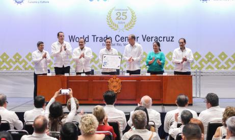 En el evento, el vicepresidente de la World Trade Centers Association, Remy Swaab, entregó un reconocimiento al Gobernador de Veracruz, por los 25 años del WTC.