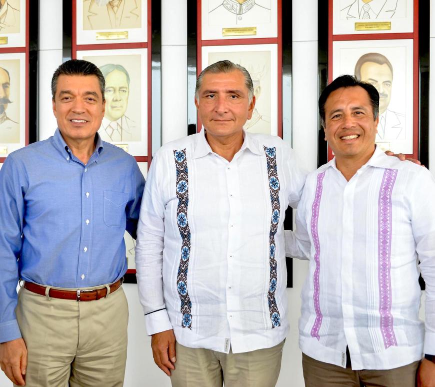 Acuerdan gobernadores realizar reuniones itinerantes, de manera mensual, para dar seguimiento a las acciones de Construcción de la Paz Villahermosa, Tab., 13 de mayo de 2019.- El gobernador Cuitláhuac García Jiménez se reunió con sus homólogos de Tabasco, Adán Augusto López Hernández, y Chiapas, Rutilio Cruz Escandón Cadenas, en esta ciudad, a fin de diseñar estrategias y coordinar los trabajos en materia de seguridad … Continúa leyendo Coordina Veracruz estrategia de seguridad con Tabasco y Chiapas
