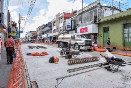 Xalapa, Ver., 27 de mayo de 2019.- Será este fin de semana cuando concluyan los trabajos de rehabilitación en la calle Francisco Javier Clavijero, en el centro de la ciudad, donde se sustituye varias placas de concreto que se fracturaron por el impacto del transporte público u obras de drenaje y alcantarillado posteriores a su pavimentación.