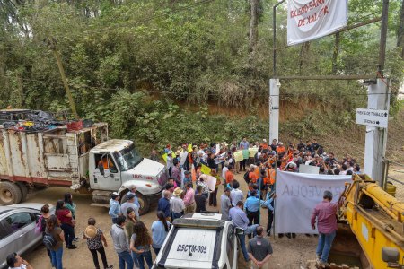 Vecinos de las colonias Las Minas, Nacional, Campo de Tiro y Reserva del Tronconal, así como de las congregaciones El Castillo y Tronconal acudieron al sitio para manifestarse con pancartas en contra de Veolia México por el mal manejo e incumplimiento de acuerdos con la ciudadanía.