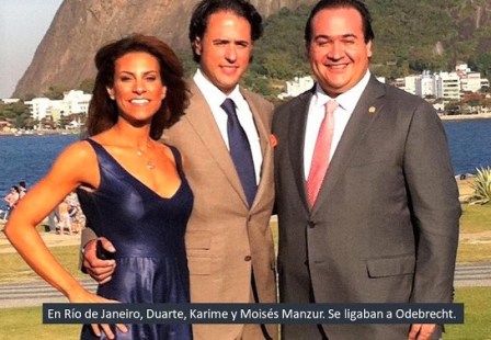 Acompañaron a Duarte en aquella gira su asesor Enrique Jackson Ramírez, el secretario de Economía Erick Porres Blesa, el entonces subsecretario de Promoción Turística Harry Grappa,y los empresarios Estaquio de Nicolás, Francisco García González y Moisés Mansur Cysneiros, a quienes presentó como inversionistas mexicanos. Moisés, prestanombre de Javier, terminaría traicionándolo y declarando que eran ciertos todos los actos de corrupción de los que se les acusaba.