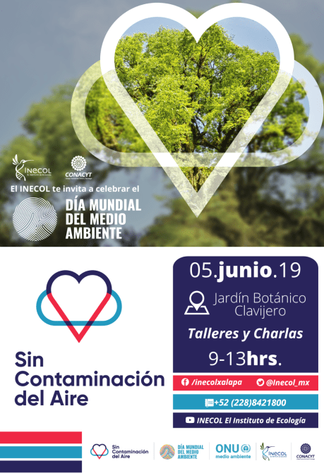 Xalapa, Ver., 04 de junio de 2019.- El Instituto de Ecología celebrará el Día Mundial del Medio Ambiente, evento global liderado por la ONU que se efectúa cada 5 de junio en miles de comunidades de todo el mundo; esta fecha es una oportunidad para apropiarnos de la naturaleza que nos rodea y participar activamente en la protección de la tierra, ya que el objetivo es sensibilizar a los gobiernos, industria, comunidades y los individuos en general, a unirse para explorar las soluciones para vivir en un planeta sin contaminación del aire, ya que es el mayor riesgo ambiental para la salud.