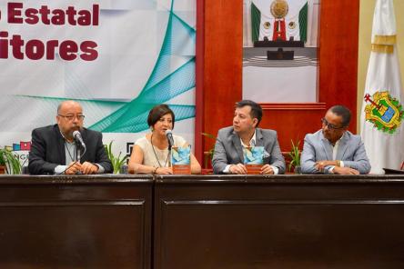 Durante la ceremonia de apertura de las actividades de los escritores, acompañaron al legislador León David Jiménez, las diputadas Cristina Alarcón Gutiérrez, Adriana Paola Linares Capitanachi y Jessica Ramírez Cisneros; y el diputado Augusto Nahúm Álvarez Pellico.