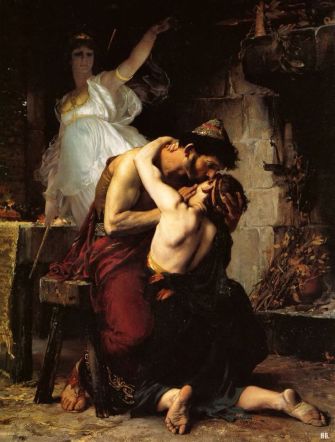 “Odiseo. –¡Telémaco! No conviene que te admires de tan extraordinaria manera, ni que te asombres de tener a tu padre aquí dentro; pues ya no vendrá otro Odiseo, que ese soy yo, tal como ahora me ves, que, habiendo padecido y vagado mucho, torno en el vigésimo año a la patria tierra. Dichas estas palabras se, sentó. Telémaco abrazó a su buen padre, entre sollozos y lágrimas. A entrambos les vino el deseo del llanto y lloraron ruidosamente, plañendo más que las aves, águilas o buitres de corvas uñas., cuando los rústicos les quitan los hijuelos que aún no volaban; de semejante manera, derramaron aquellos tantas lagrimas que movían a compasión.”