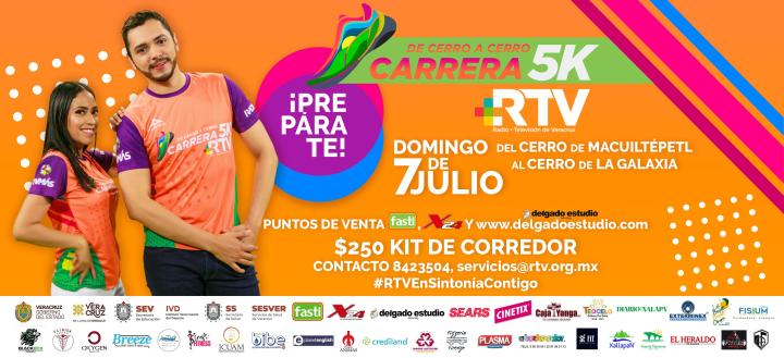 Xalapa, Ver., 12 de junio de 2019.- Radiotelevisión de Veracruz (RTV) informa que el próximo 07 de julio se llevará a cabo la tercera edición de la Carrera 5K, denominada “De cerro a cerro en sintonía contigo”; categoría única, ramas varonil y femenil.