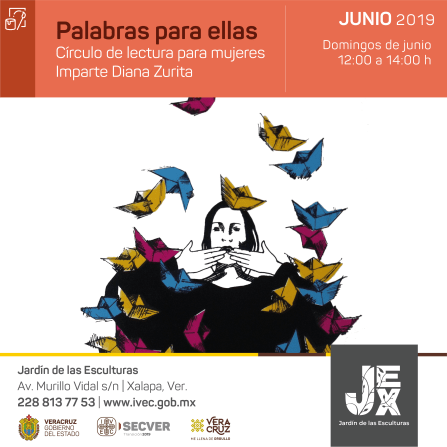 Xalapa, Ver., 22 de junio de 2019.- El Instituto Veracruzano de la Cultura (IVEC) presenta “Palabras para ellas”, un círculo de lectura para mujeres con el objetivo de crear un ambiente de confianza y complicidad entre las participantes. Las actividades se desarrollarán los domingos 23 y 30 de junio de 12:00 a 14:00 horas, en el Jardín de las Esculturas; entrada libre.