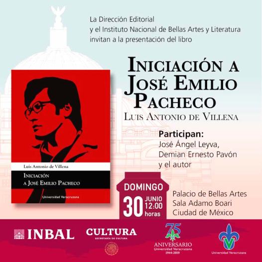 Se contará con la participación de José Ángel Leyva, Demian Ernesto Pavón y el autor Luis Antonio de Villena. El libro, pensado originalmente como introducción a una antología española de poesía de Pacheco, fue actualizado y aumentado por Villena para llevar al lector por caminos de una obra significativa.