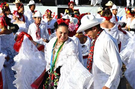 Posteriormente, en la macroplaza del malecón más de 400 jarochos bailaron La bamba, El huateque, El colás y El tilingo, acompañados del grupo Nematatlín.