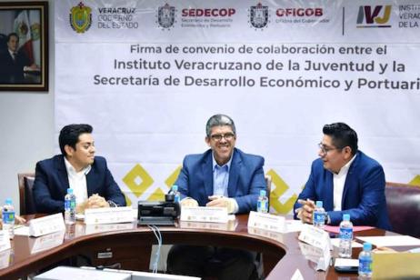 Xalapa, Ver., 04 de julio de 2019.- La Secretaría de Desarrollo Económico y Portuario (SEDECOP) y la Oficina del Gobernador (OFIGOB), a través del Instituto Veracruzano de la Juventud (IVJ), firmaron un convenio de colaboración para impulsar la capacitación de jóvenes emprendedores.