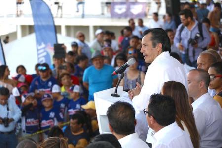 Boca del Río, Ver., 10 de julio de 2019.- El gobernador Cuitláhuac García Jiménez inauguró el Campeonato Nacional de Curso Largo Veracruz 2019, que congrega a mil 634 nadadores de 35 delegaciones del 08 al 14 de julio, en el Centro Acuático “Leyes de Reforma”.
